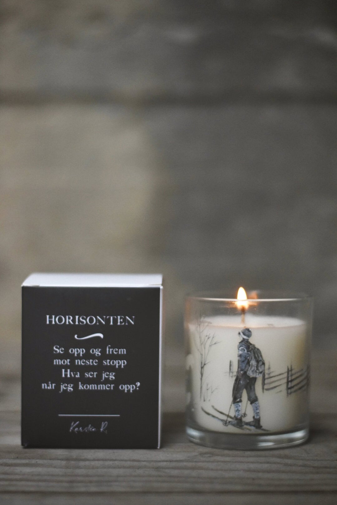 Duftlys i gaveeske 8x9cm «hygge» – Gabriel Akvarell malt av Anita Sletten Nordicwild