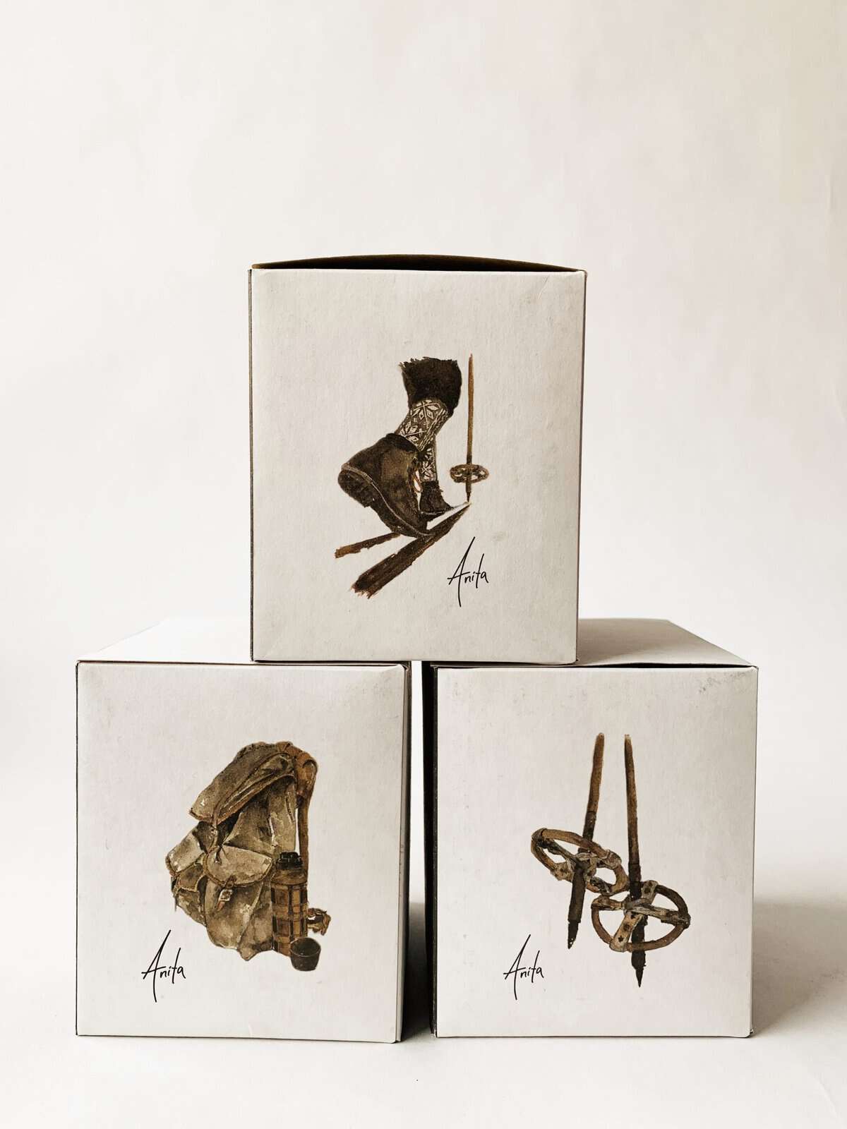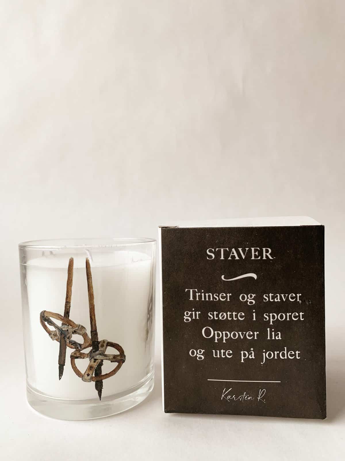 Duftlys i gaveeske 8x9cm skistaver – bomull Akvarell malt av Anita Sletten Nordicwild