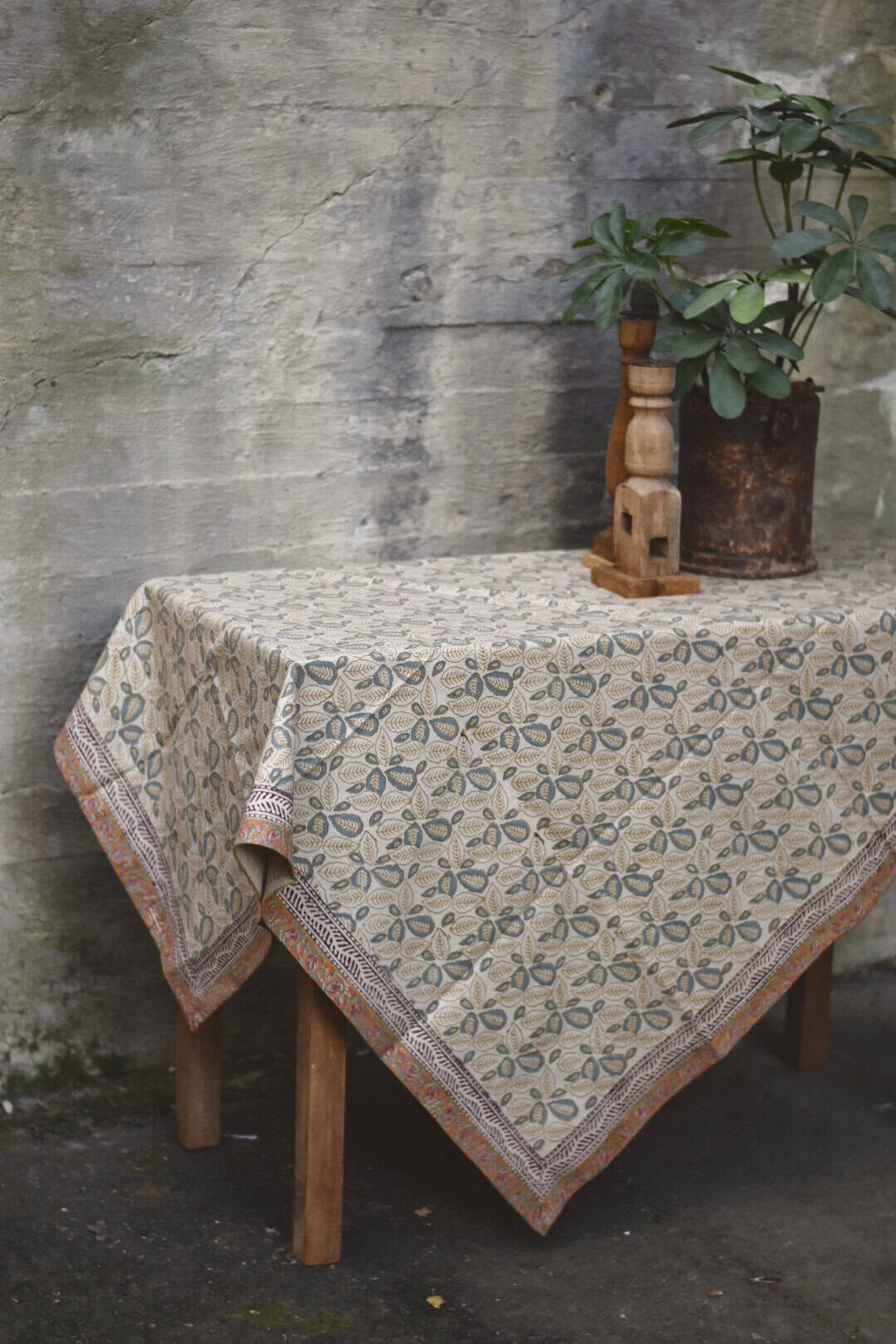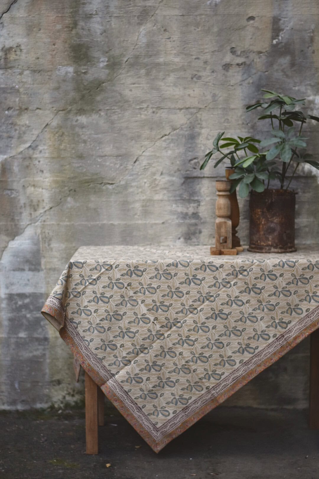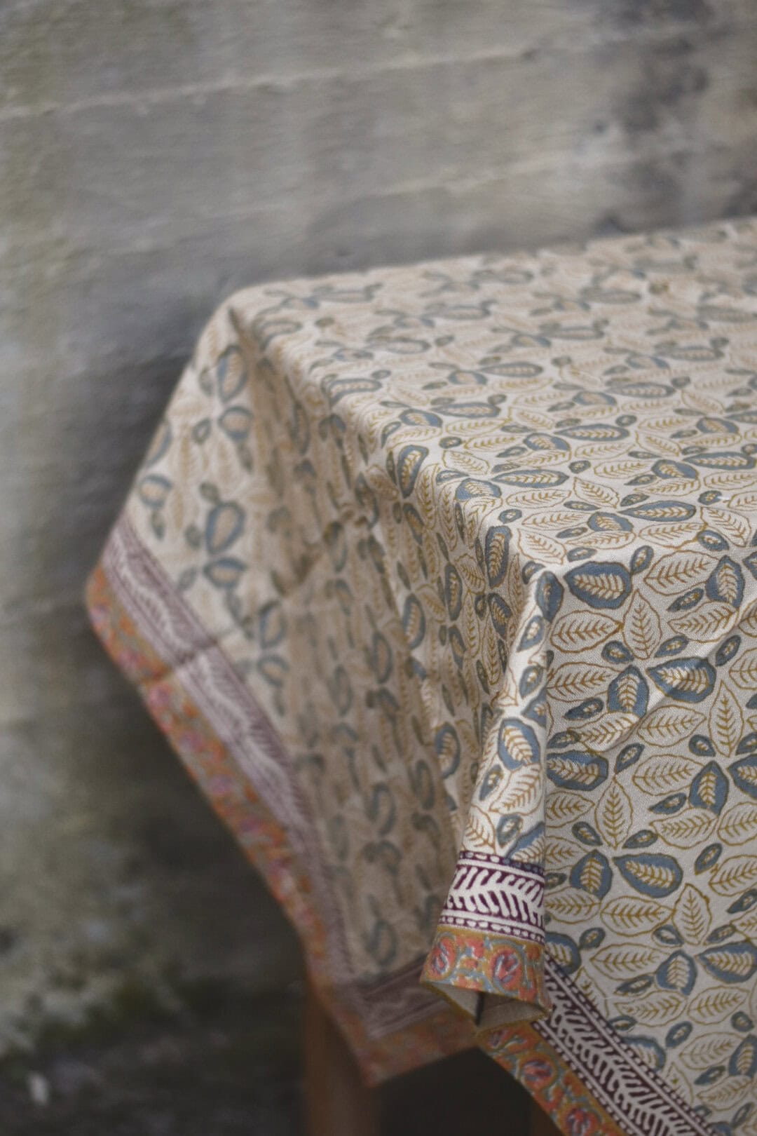 Håndtrykket duk på kraftig bomullsstoff. 100% bomull.