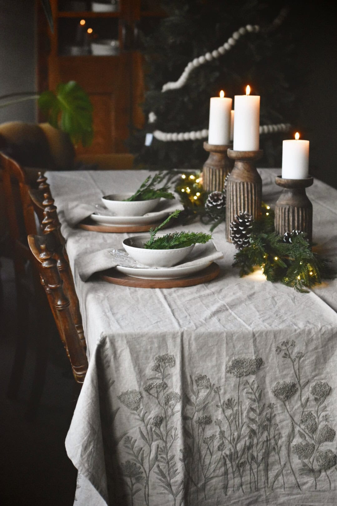 Duk brodert natur 140×350 cm