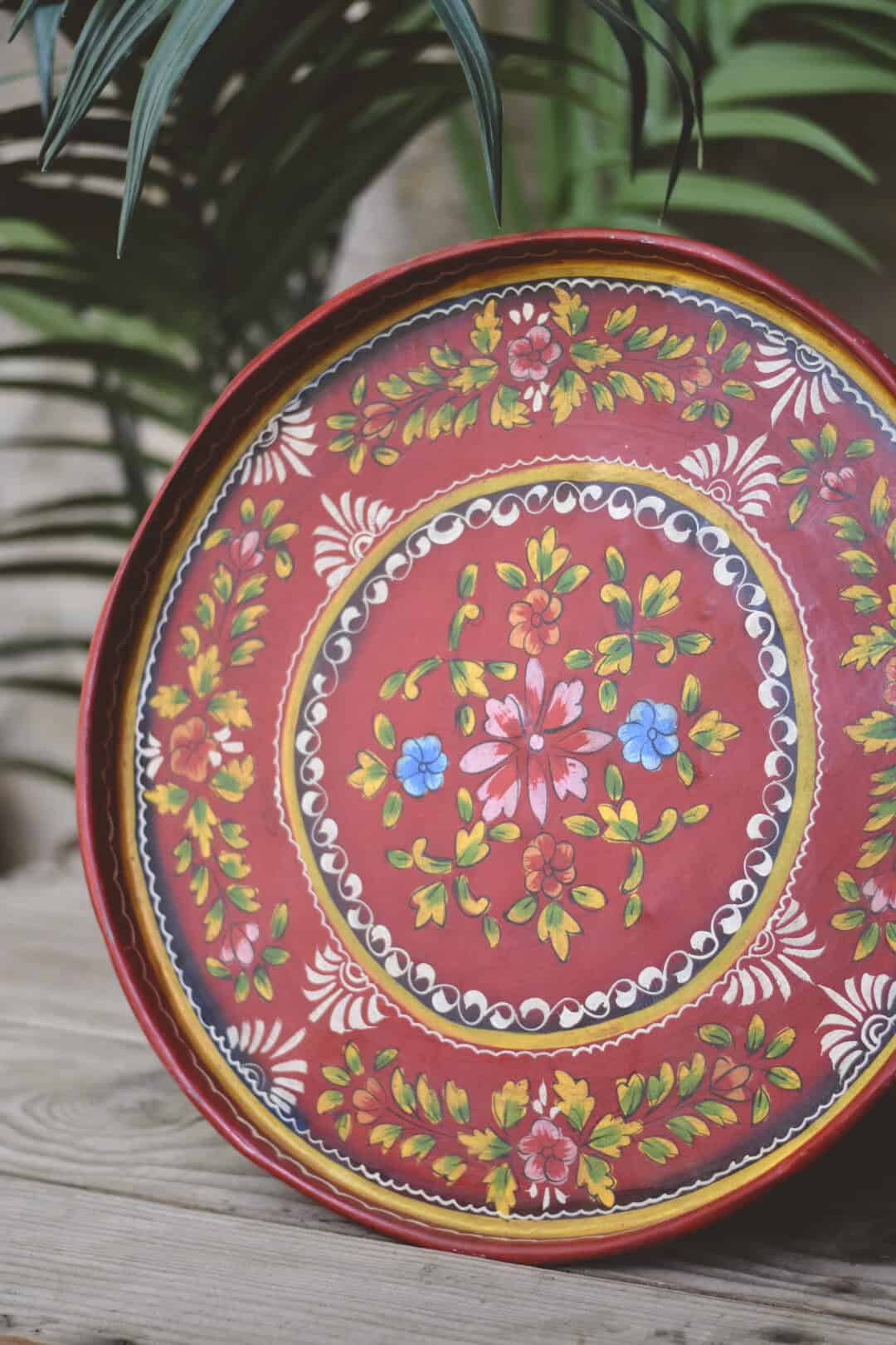 Håndmalt rundt fat i metall D:55cm