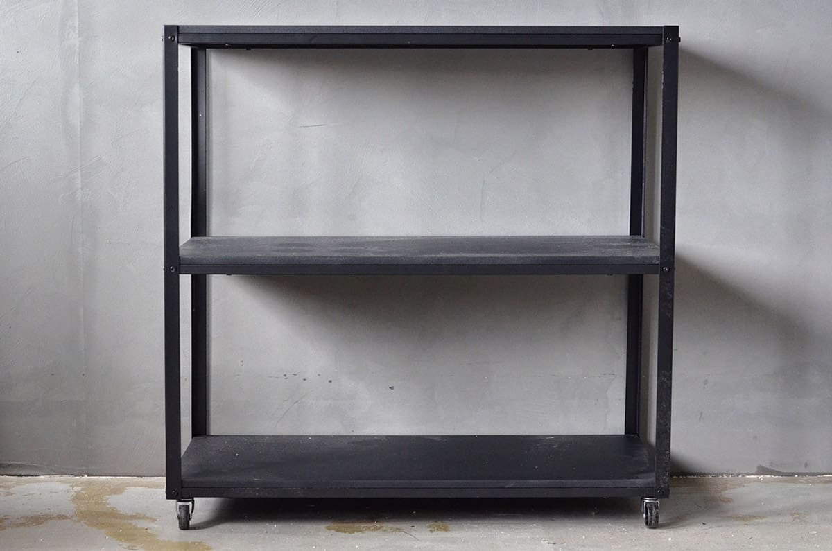 Hylle med hjul treplater 100x50x100cm sort.