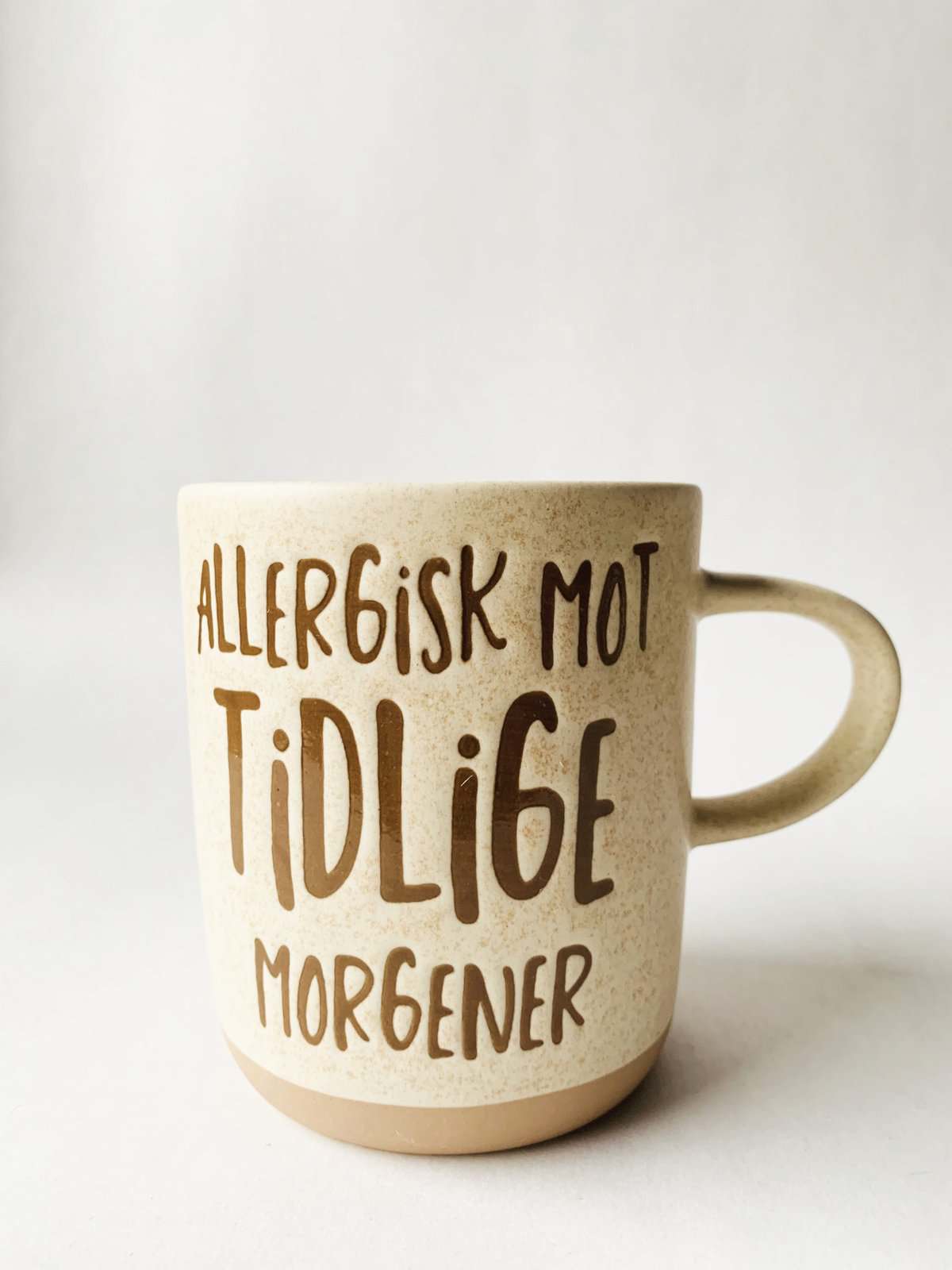 Krus h 9,5 cm «Allergisk mot tidlige morgener»