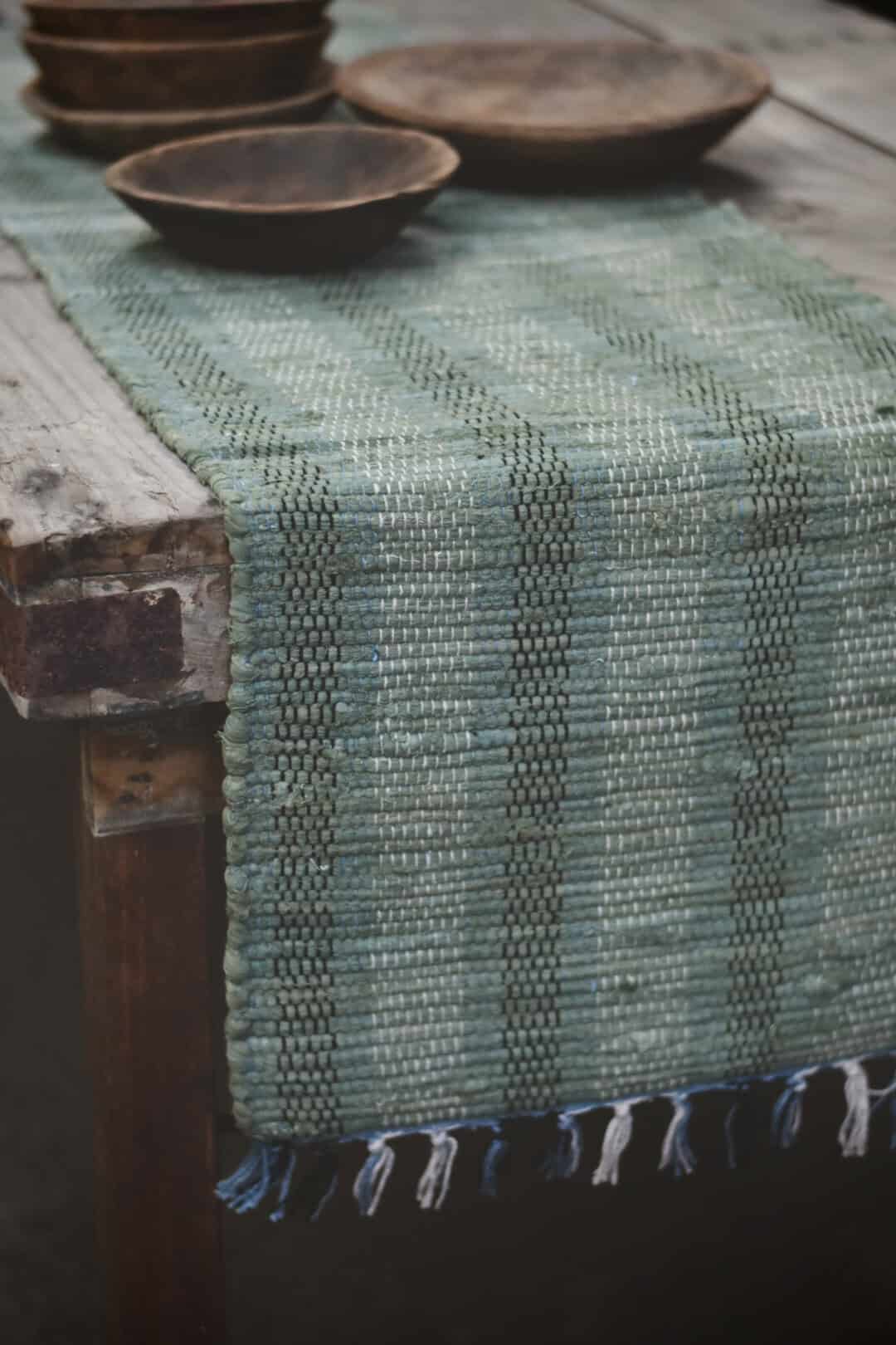 Løper bomull striper 40×140 cm sjøgrønn