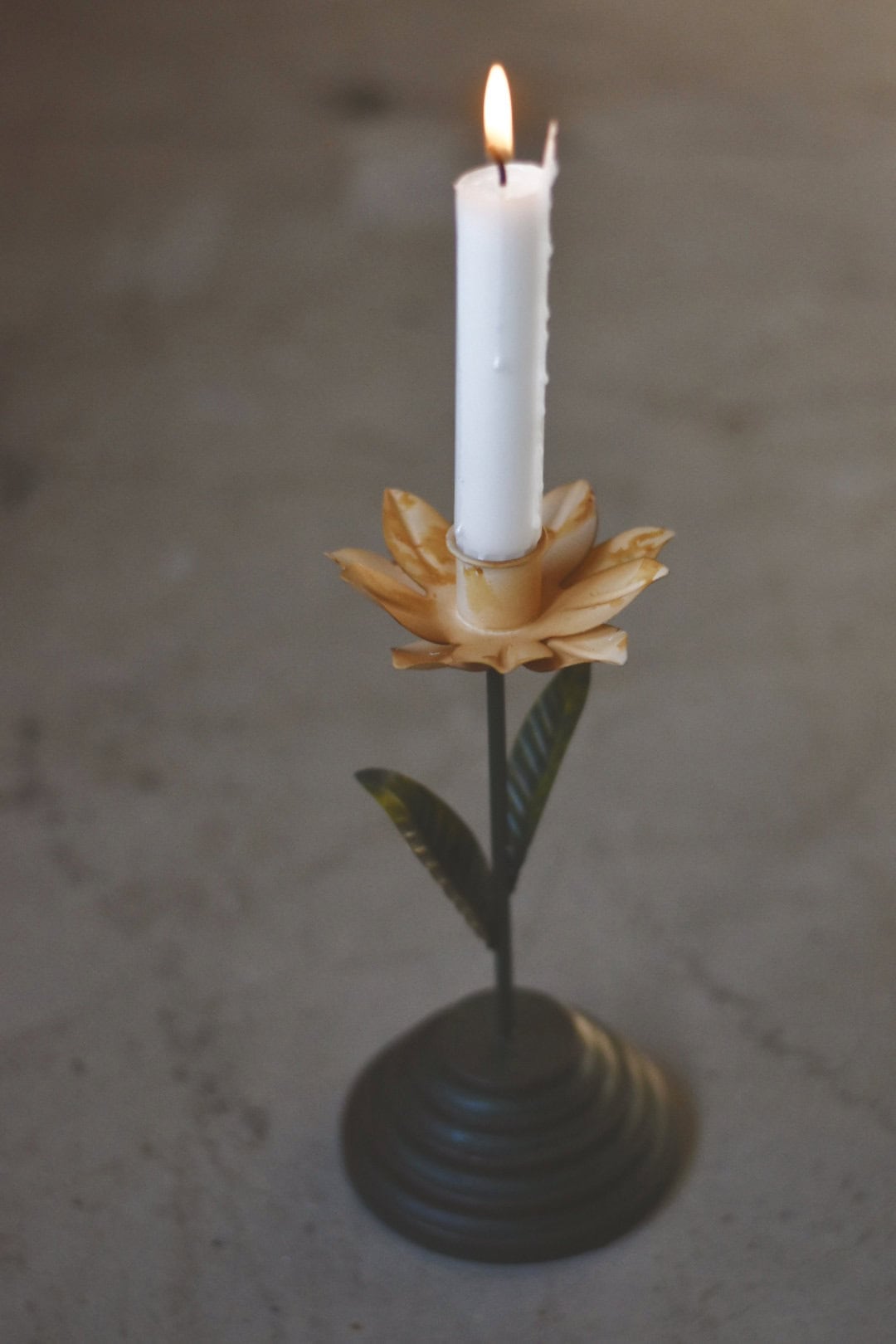 Lysestake metall blomst h 22 cm creme