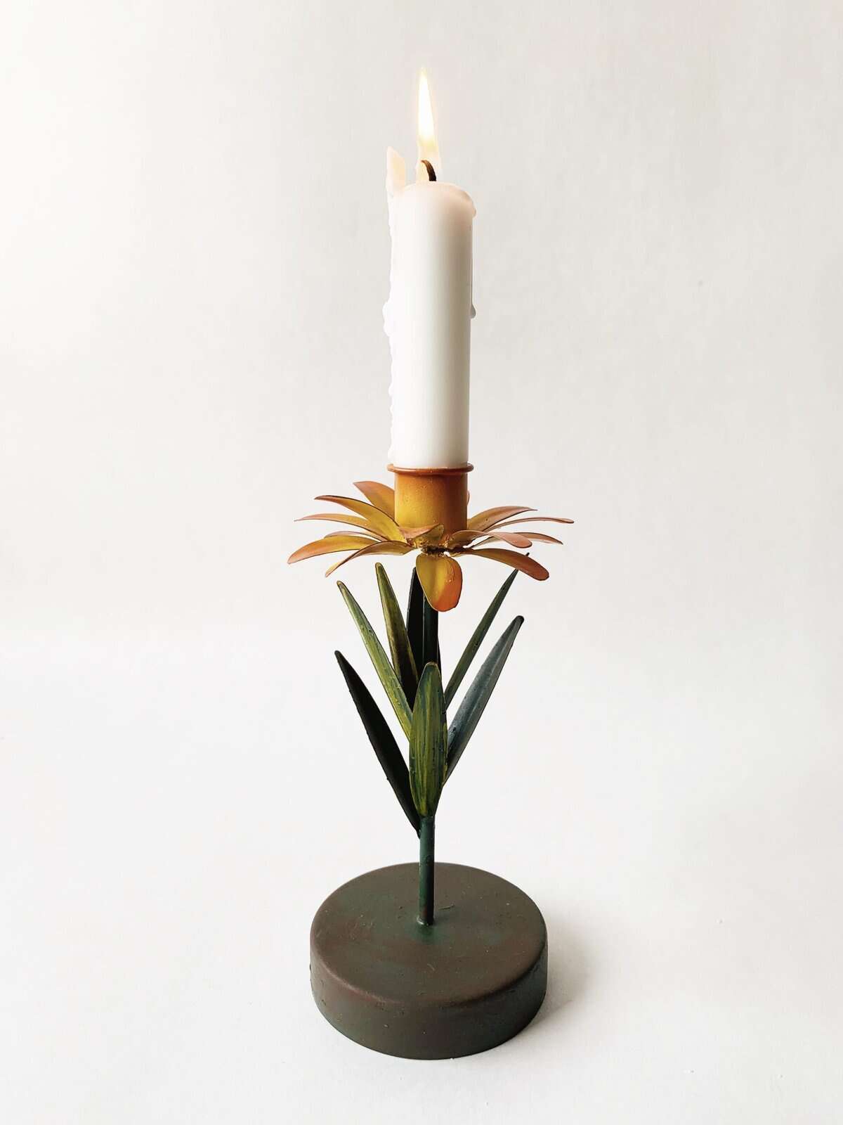 Lysestake metall prestekrage h 17 cm orange