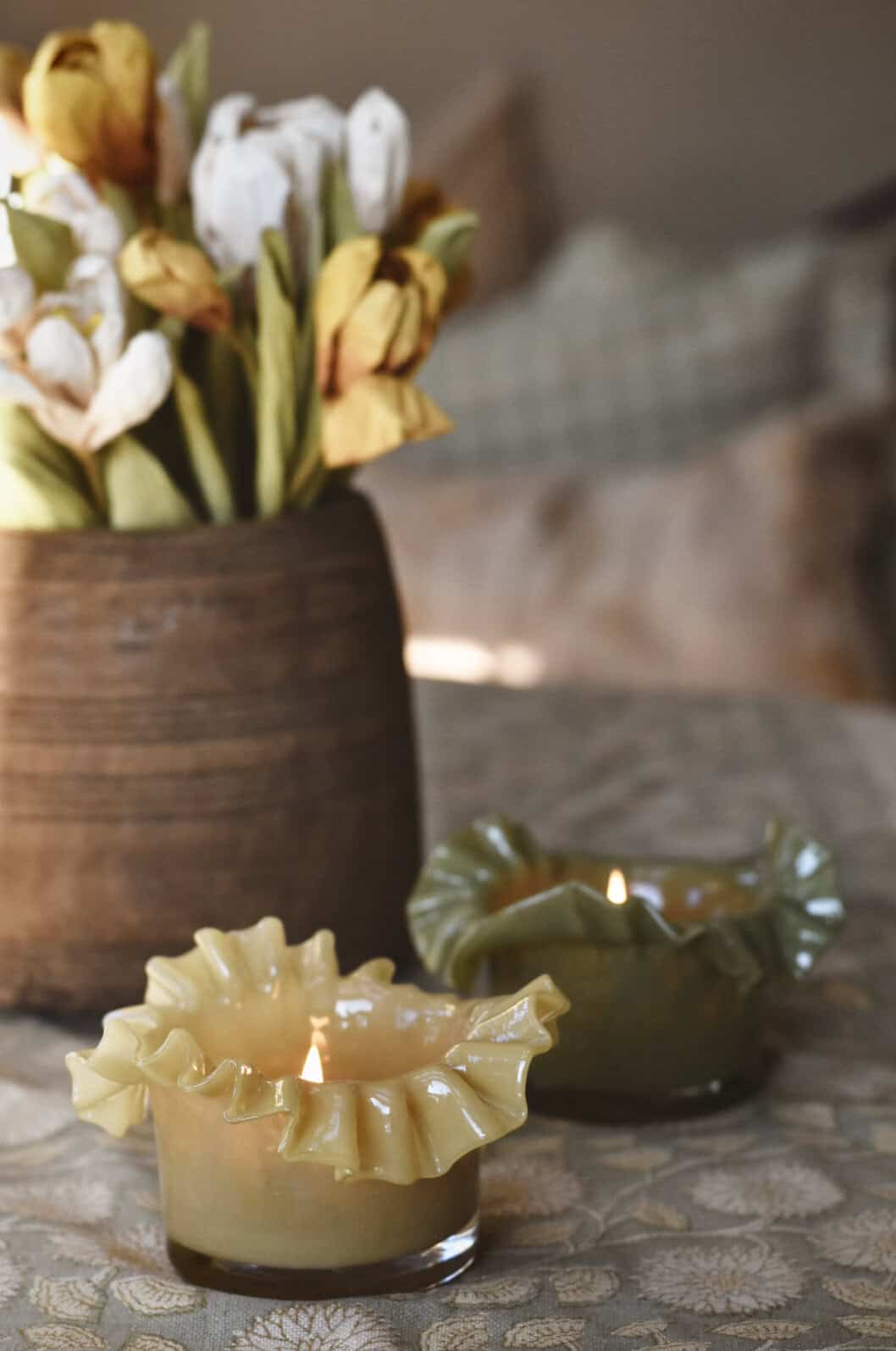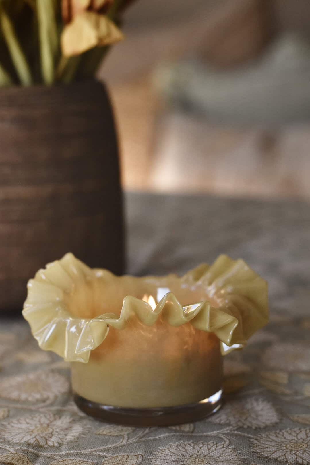 Lysglass bølger 13×8 cm gul
