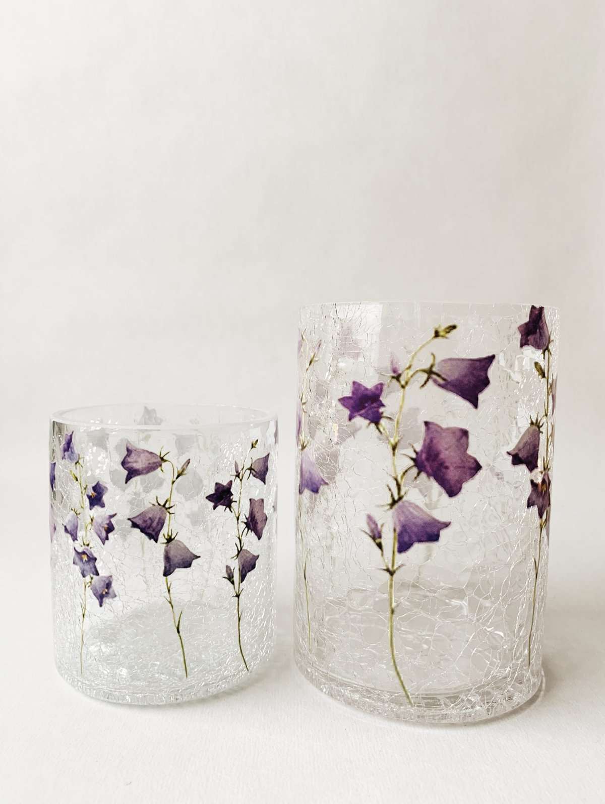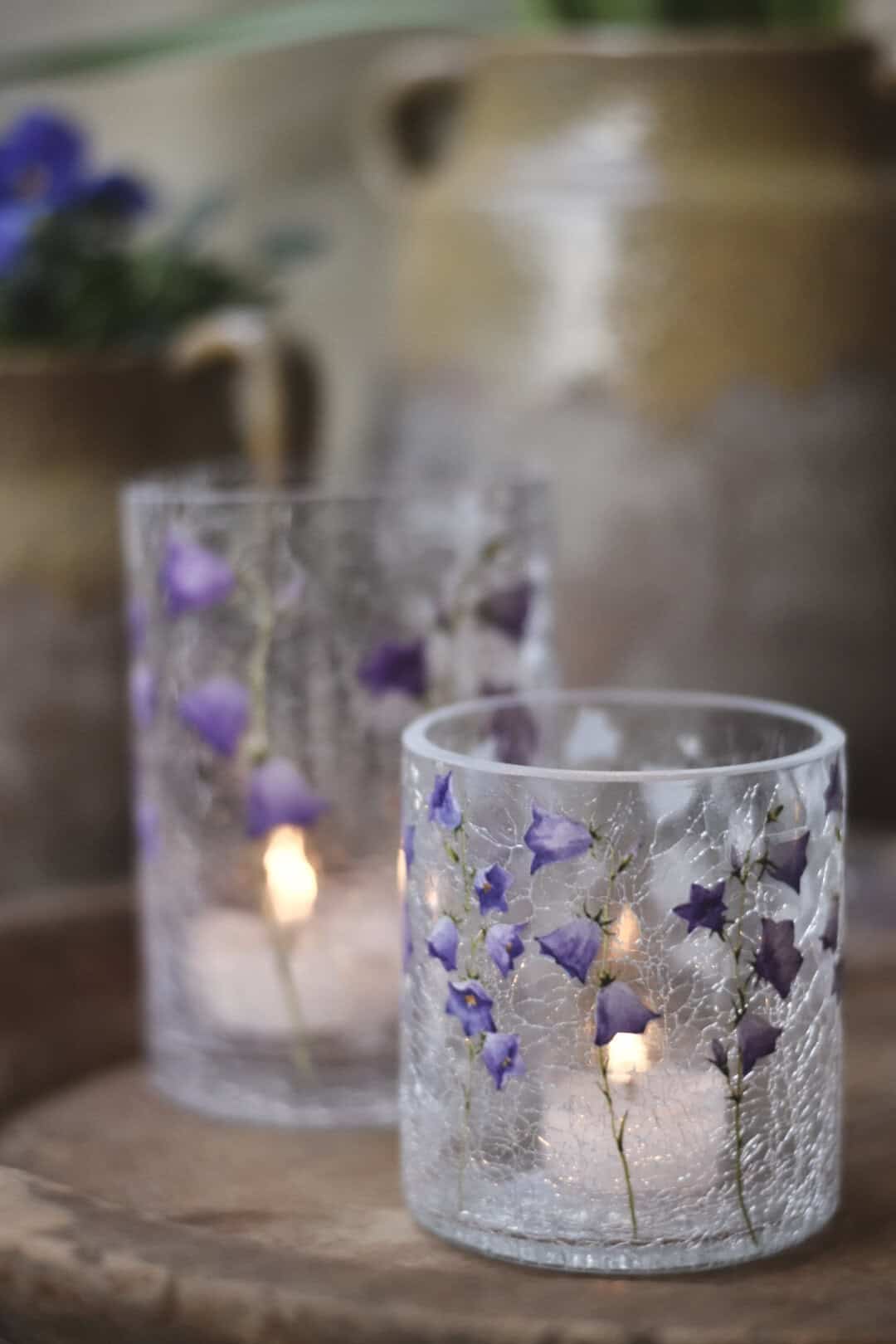 Lysglass krakelert 10×14,5 cm blåklokker