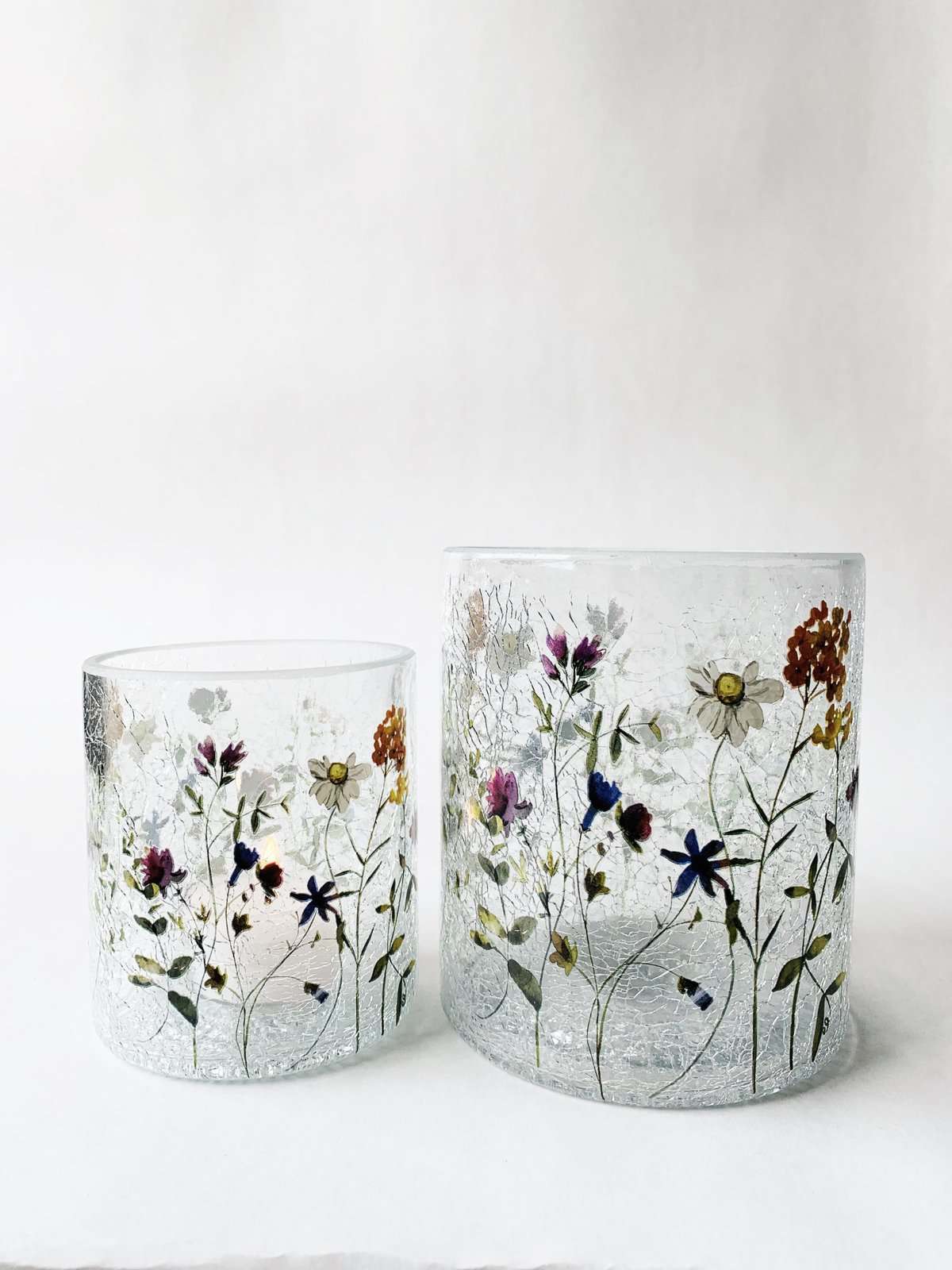 Lysglass krakelert blomstereng mix 11,5×13 cm