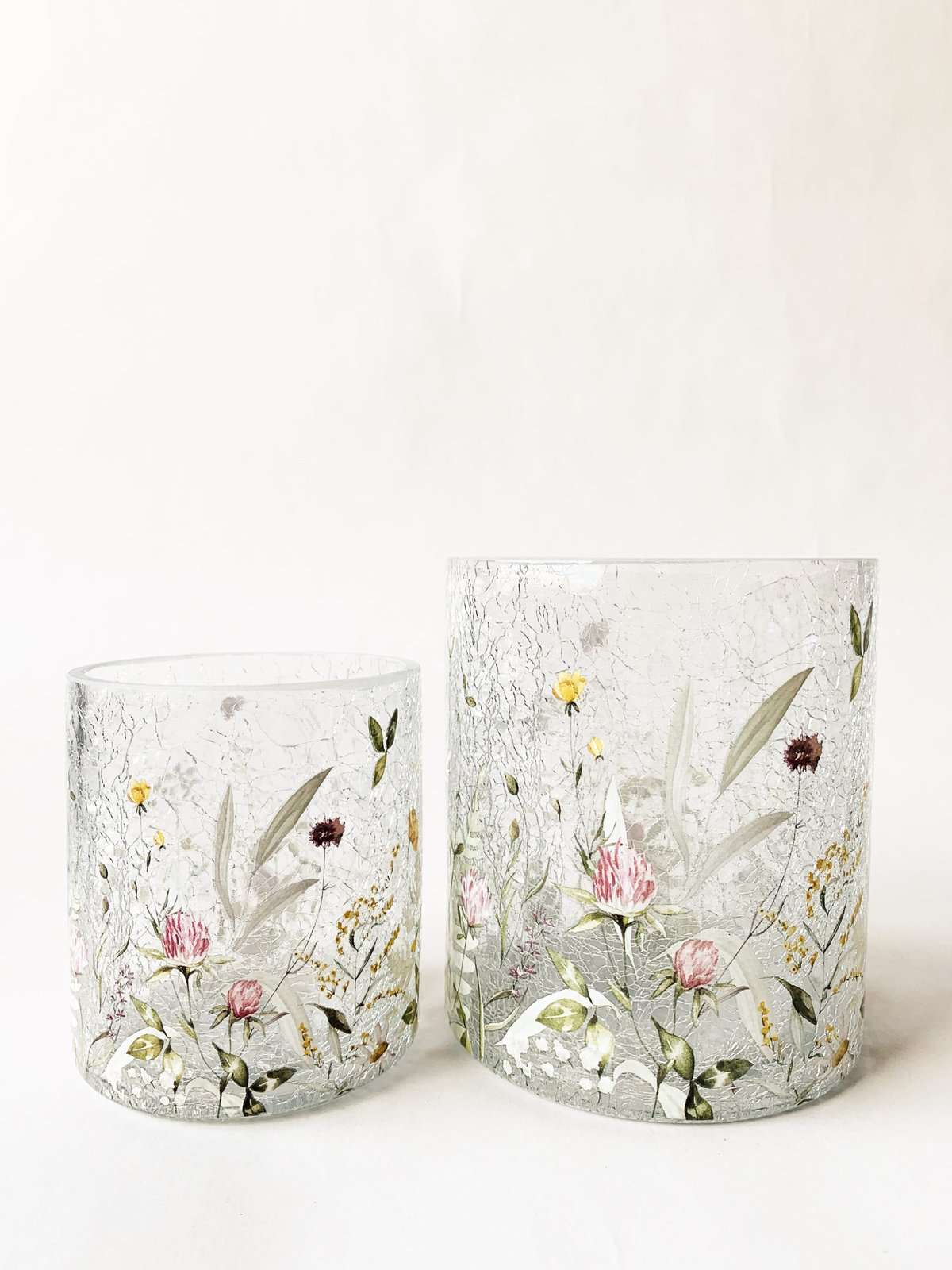 Lysglass krakelert blomstereng rosa/gul 11,5×13 cm
