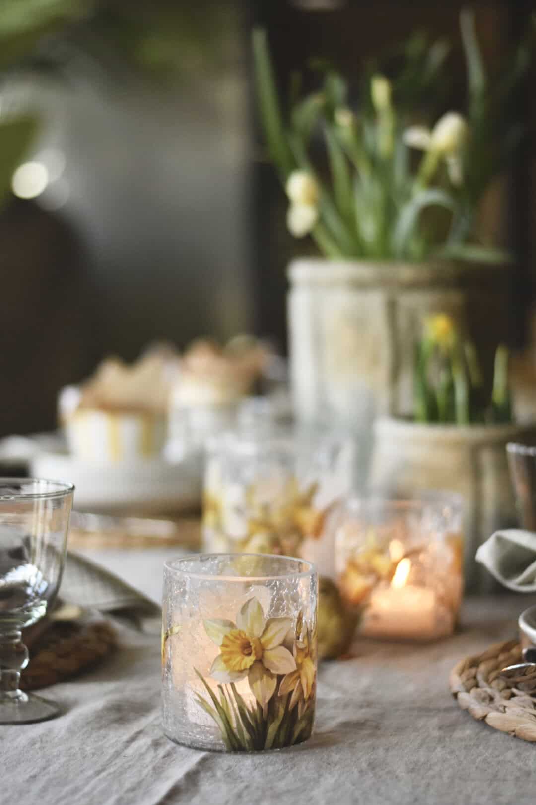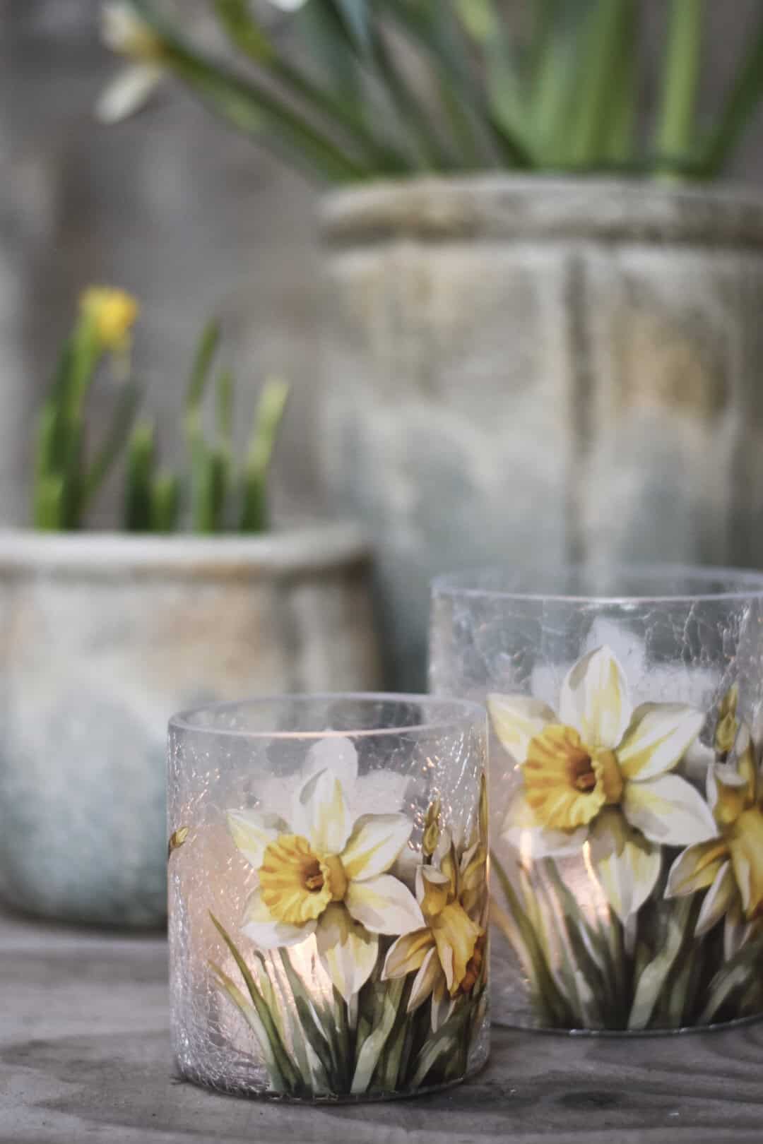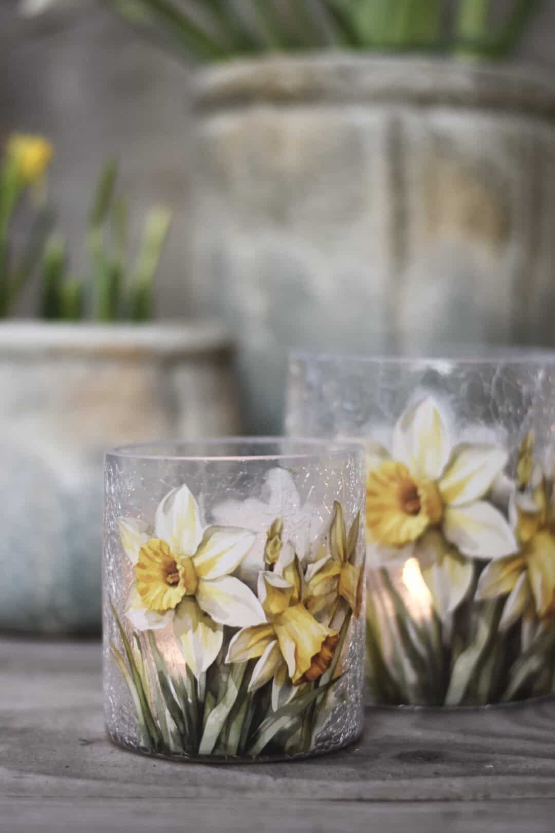 Lysglass krakelert påskeliljer 9×10 cm