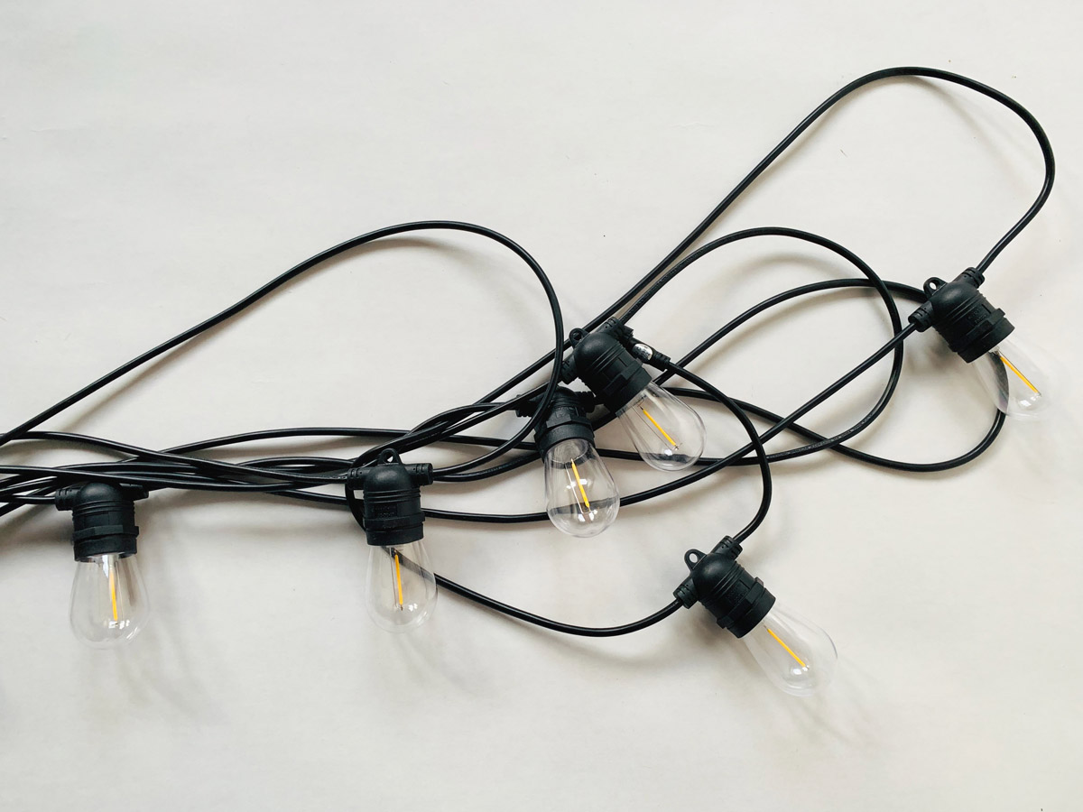 Lyskjede med 12 glødepærer sort for ute og innebruk.
