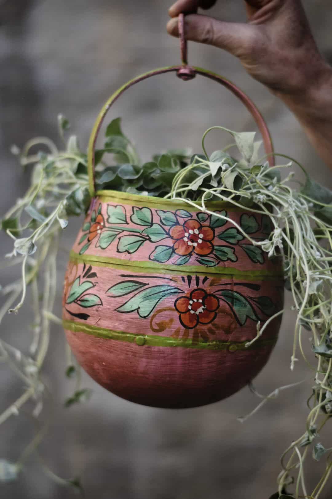 Potter i metall håndmalte 12x26cm rosa