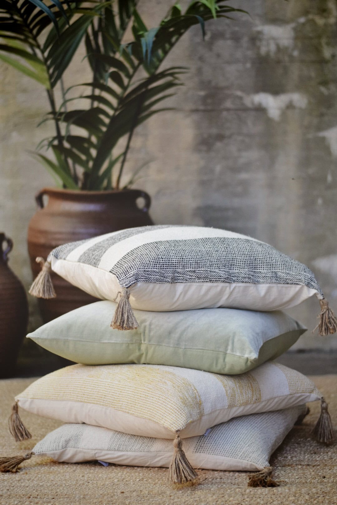 Putetrekk m striper 60×60 cm gult