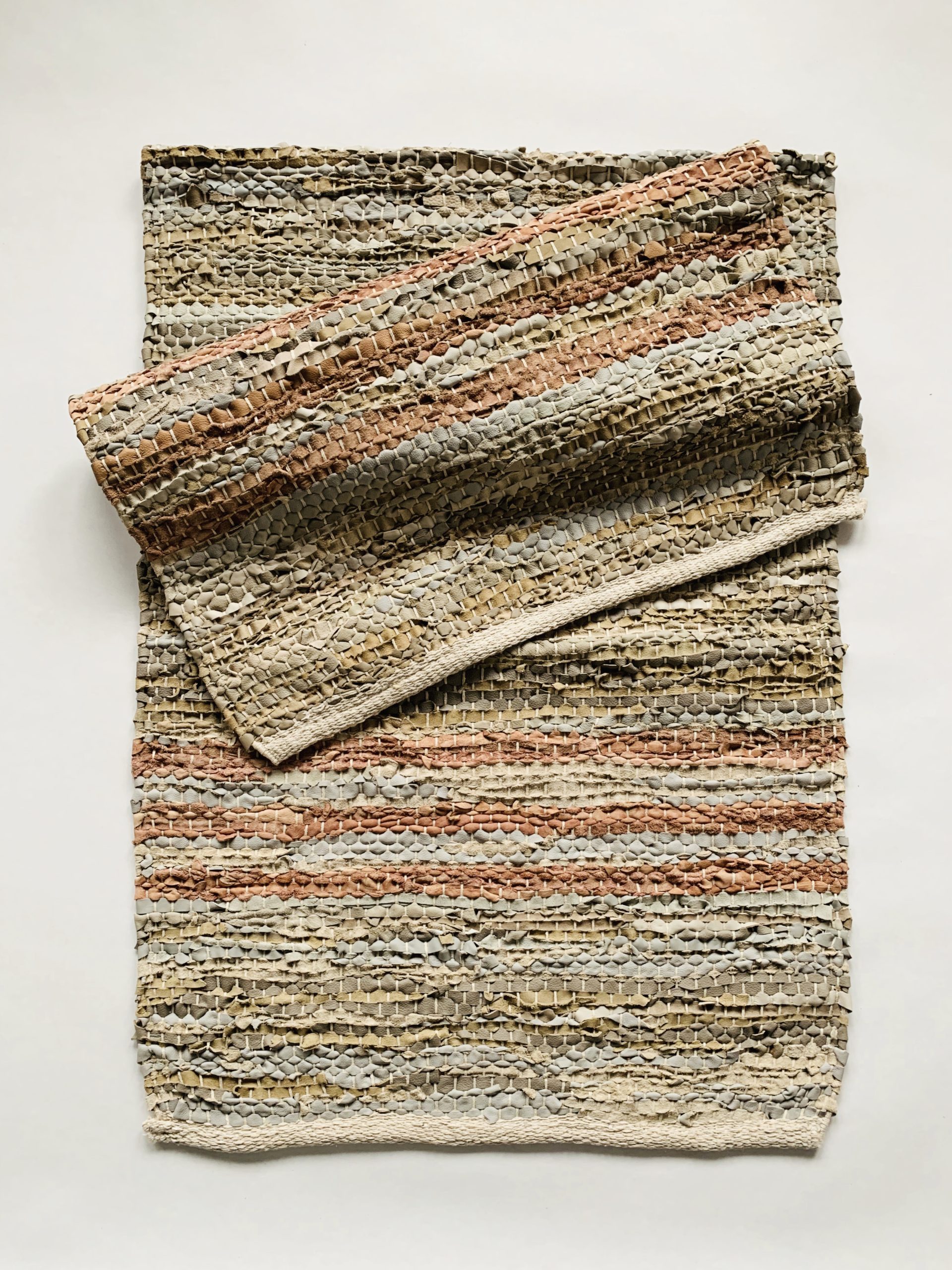 Rye resirkulert skinn 60×160 cm stripet rosa/grå