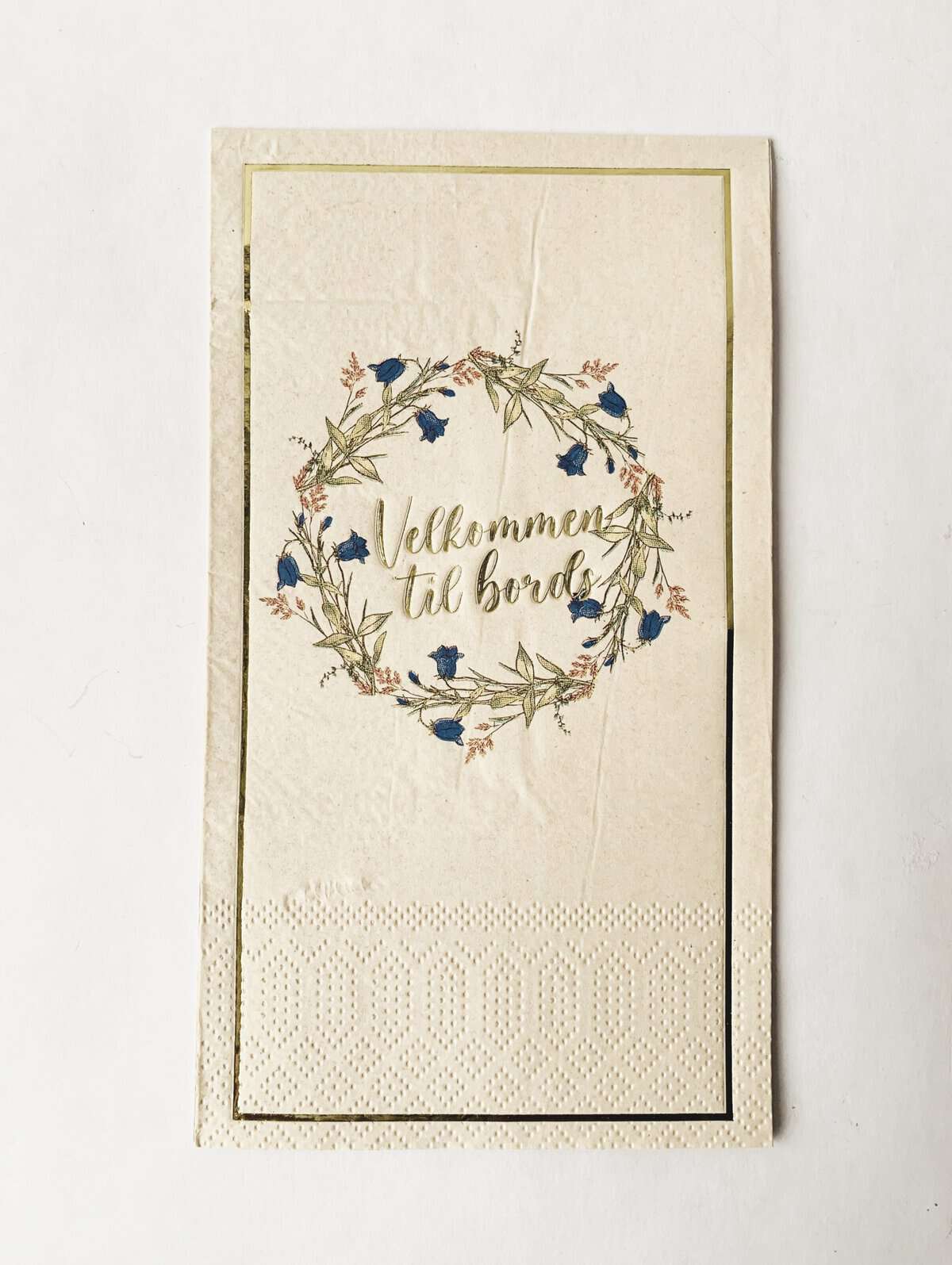 Serviett buffet «Velkommen til bords» krans blåklokker