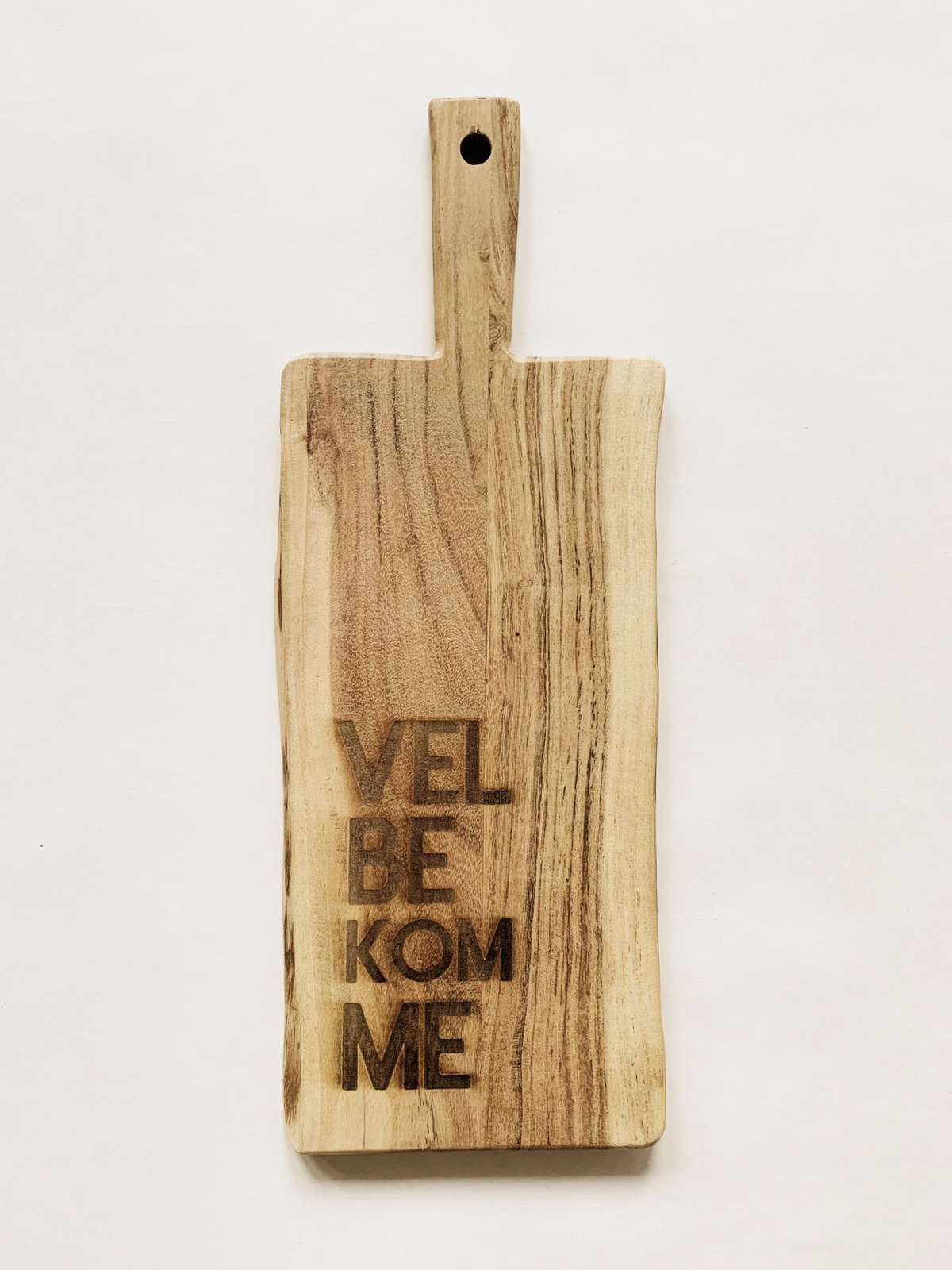 Skjærebrett «vel bekomme» 18×50 cm akasietre