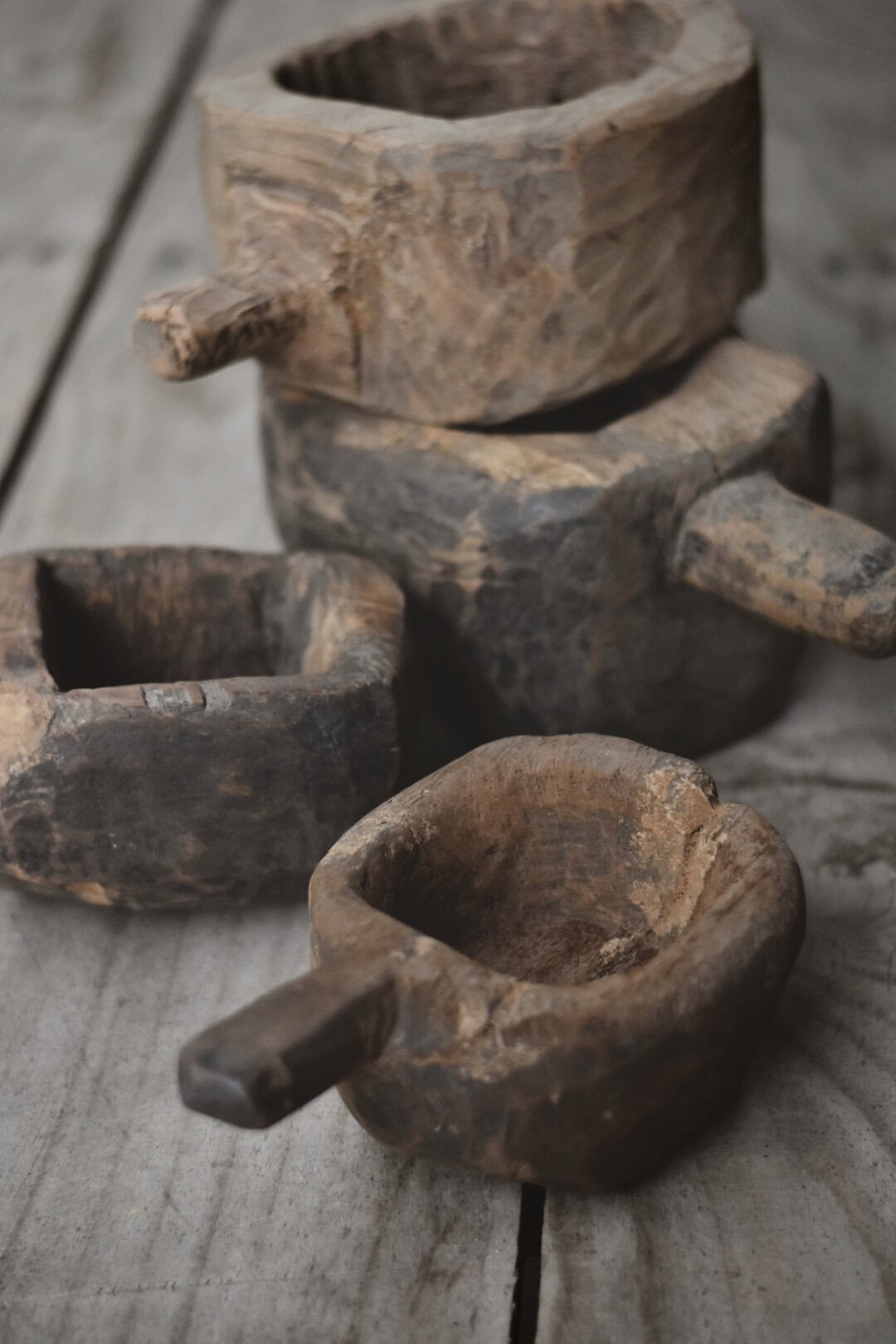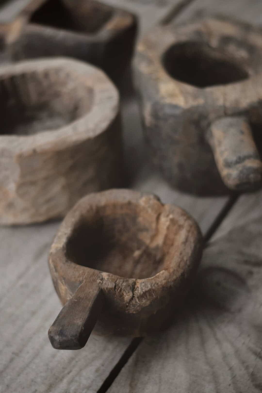 Vintage trebolle med og uten håndtak D:12-23cm/H:8-15cm